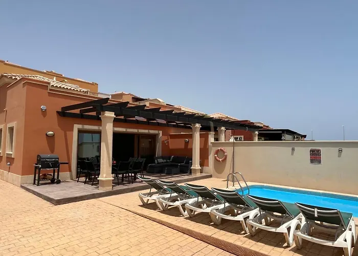 Die Villa bietet eine Essecke und einen Essbereich im Freien mit Ausstattung zur Kaffee- & Teezubereitung. Zur Selbstverpflegung stehen auch eine Mikrowelle, eine Kaffee-/Teemaschine und ein Kühlschrank zur Verfügung. Vom Flughafen Fuerteventura sind es ca. 15 Minuten mit dem Auto zu der 10-Zimmer-Villa. Die Unterkunft verfügt über eine Terrasse, wo Sie sich nach einem anstrengenden Tag entspannen können, sowie über einen Swimmingpool.